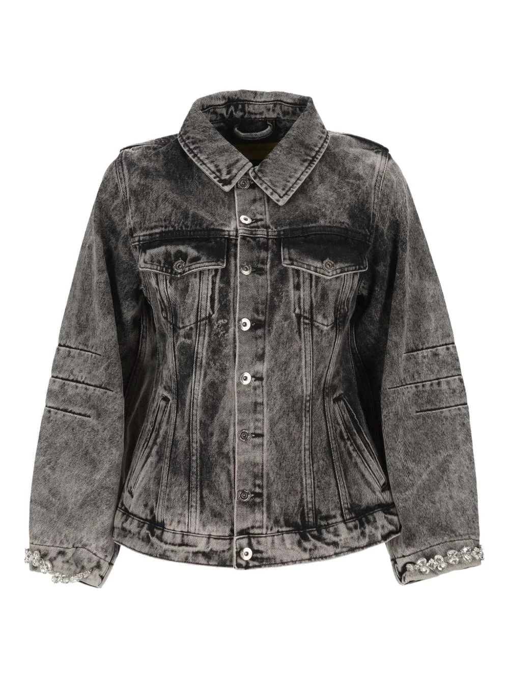crystal-embellished denim jacket Highlights - Grey - Crystal embellishments - Chest pockets - Button fastening - Back belt detail - Sculpted sleeves Imported Composition Organic Cotton 100% Washing instructions Hand Wash