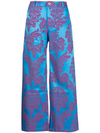 floral print wide-leg cropped trousers Highlights - Blue/purple - Recycled polyester - Metallic sheen - All-over floral print - Belt loops - Button fly fastening - Wide leg - Two rear patch pockets - Two front patch pockets - Cropped Imported Composition Recycled Polyester 69%, Cotton 31% SIZE & FIT Model measurements Height 5 ft 11 in(1.8 m) Bust/Chest 33.07 in(84 cm) Hips 37.4 in(95 cm) Waist 25.19 in(64 cm) Measurement FRONT RISE 12.4 in(31.5 cm) WAIST 25.98 in(66 cm) HIPS 37.79 in(96 cm) FittingInformation This piece fits true to size. We recommend you get your regular size Designed to be fitted at the waist and hips, loose over the leg Made with a mid-weight non-stretch fabric Washing instructions Machine Wash