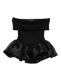 off-shoulder peplum top Highlights - Black - Off-shoulder style - Peplum detail - Ribbed texture - Elasticated top edge Imported Composition Polyester 100%, Cotton 97%, Spandex/Elastane 3% SIZE & FIT Model measurements Height 5 ft 10 in(1.78 m) Bust/Chest 33.46 in(85 cm) Hips 36.22 in(92 cm) Waist 23.22 in(59 cm) Washing instructions Machine Wash
