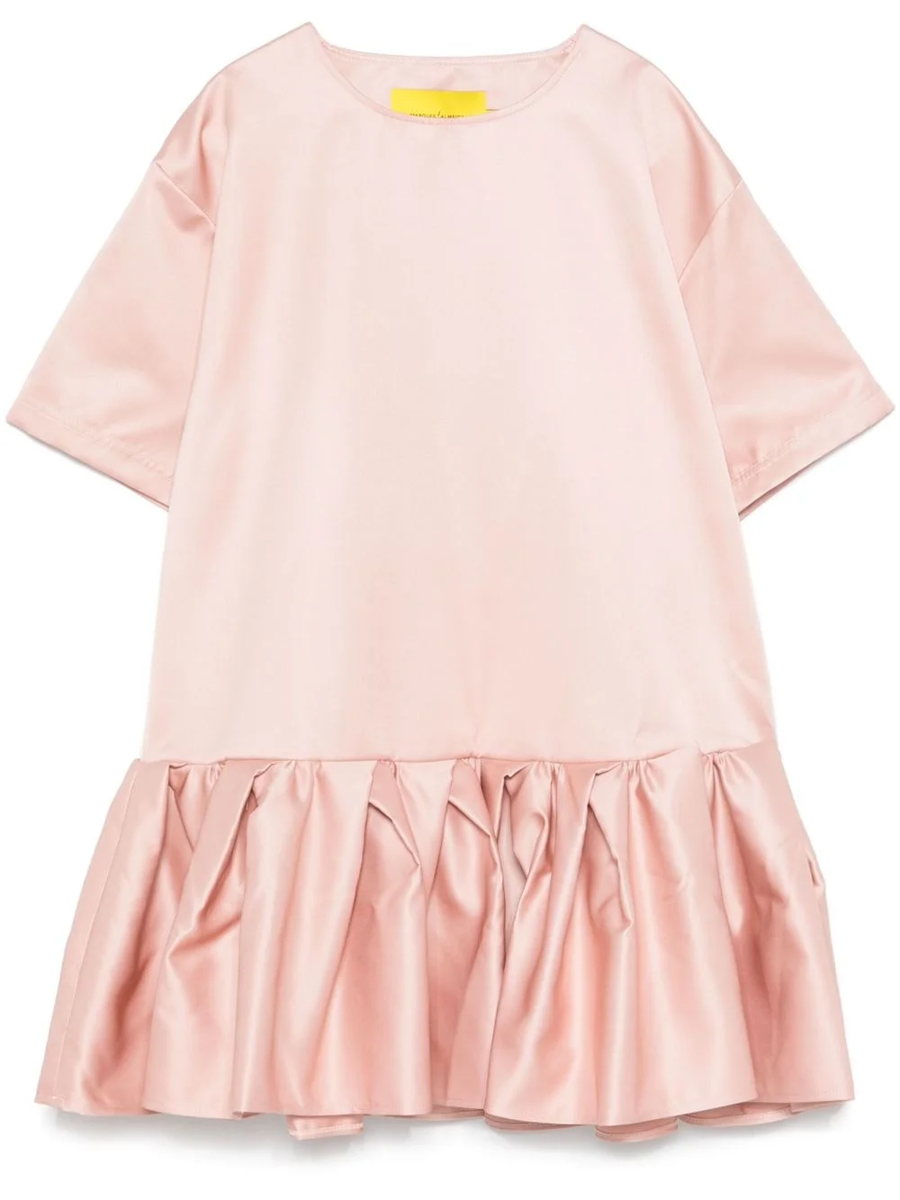 ruffled-skirt mini dress Highlights - Poudre pink - Crew neck - Drop shoulder - Short sleeves Imported Composition Polyester 100% SIZE & FIT Model measurements Height 5 ft 10 in(1.78 m) Bust/Chest 31.49 in(80 cm) Hips 37 in(94 cm) Waist 23.62 in(60 cm) FittingInformation Designed to be unstructured, offering a loose fit throughout Made from a lightweight non-stretch fabric