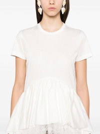 ruffled T-shirt Highlights - White - Crew neck - Short sleeves - Lace detailing Imported Composition Cotton 100%, Polyamide 100% SIZE & FIT Model measurements Height 5 ft 10 in(1.78 m) Bust/Chest 33.85 in(86 cm) Hips 36.61 in(93 cm) Waist 26.77 in(68 cm) FittingInformation Designed for a relaxed fit, this piece allows for comfort and movement when worn Made from a midweight fabric