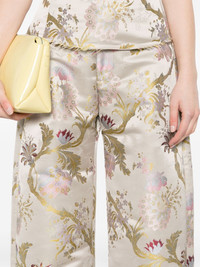 brocade-jacquard trousers Highlights - Sand beige - Concealed fly and button fastening - Classic five pockets - Frayed edge - Logo patch to the rear Imported Composition Lining: Viscose 100% Outer: Polyester 100% SIZE & FIT FittingInformation Designed for a tapered fit, these trousers allow for a close fit at the waist and a loose unrestricted fit over the leg with a closer fit towards the ankle Made from a lightweight non-stretch fabric