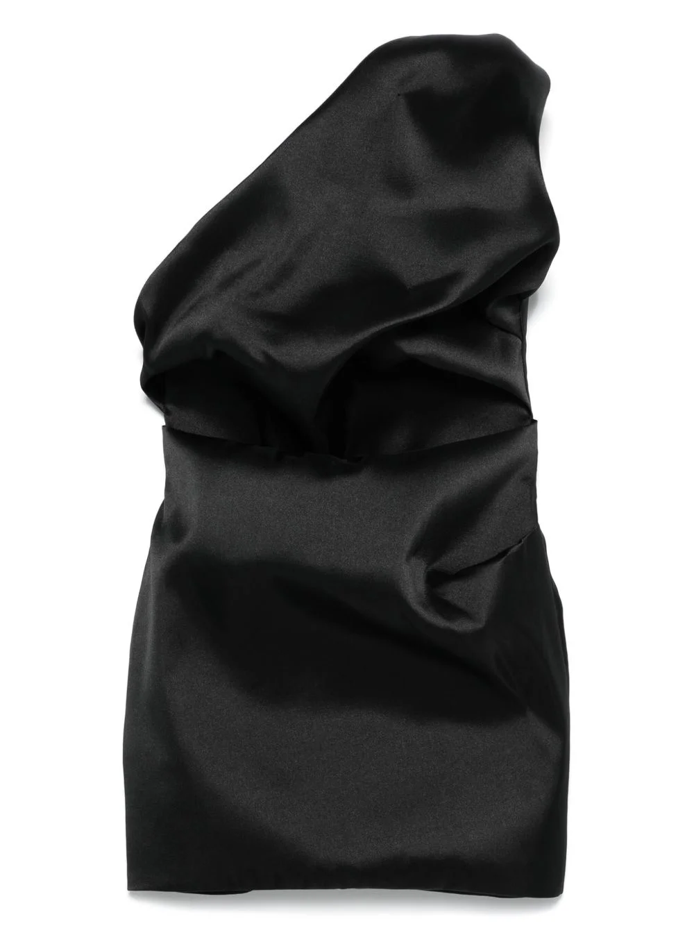 satin draped mini dress Highlights - Black - Concealed rear zip fastening - Asymmetric neck - Single shoulder strap - Full lining Imported Composition Lining: Viscose 100% Outer: Polyester 100% SIZE & FIT Model measurements Height 5 ft 9 in(1.75 m) Bust/Chest 31.88 in(81 cm) Hips 34.64 in(88 cm) Waist 24.01 in(61 cm) FittingInformation Designed for a close fit throughout Made from a midweight non-stretch fabric