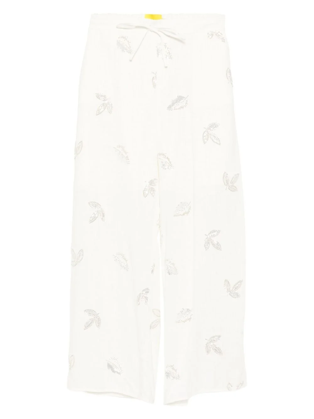 sequin-embellished trousers Highlights - White - Elasticated drawstring waistband - Two side slit pockets - Sequin embellishment Imported Composition Viscose 77%, Linen/Flax 23% SIZE & FIT Model measurements Height 5 ft 10 in(1.78 m) Bust/Chest 31.88 in(81 cm) Hips 37 in(94 cm) Waist 25.19 in(64 cm) FittingInformation Designed with a wide-leg cut, these trousers allow for a close fit at the waist and offer a loose and roomy fit over the leg Adjust this piece’s waistband to your preference using the drawstring Made from a midweight non-stretch fabric Washing instructions Hand Wash
