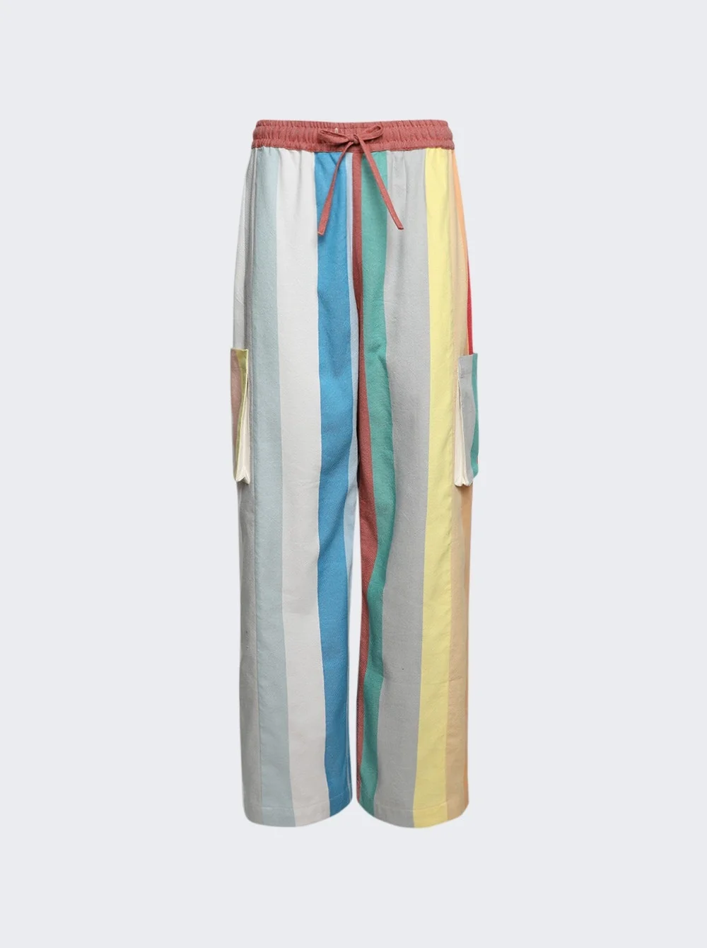 Details - Elastic waistband - Drawstring - Cargo pockets on the side - Topstitching - Straight hem Dimensions: Model is 5'9"/175cm and is wearing a size S Composition: Cotton Care: Dry clean only Brand Style: C12-125 Designer/Brand: MARRAKSHI LIFE