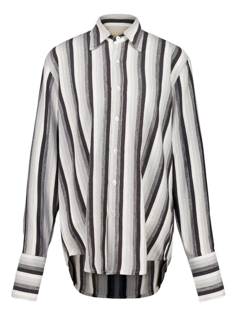French-cuff striped shirt Highlights - White and black - Cotton-blend - Striped pattern - Long sleeves - Button fastening - French cuffs - Point collar Imported Composition Cotton 85%, Polyester 15% Washing instructions Read Manufacturer Guidelines