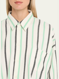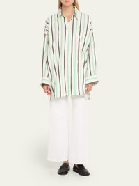 MARRAKSHI LIFE multi-stripe cotton shirt Point collar Dropped shoulders Long sleeves with button cuffs Chest pocket Oversized fit Hem falls to the hip Button-front Cotton Unlined Dry clean Made in Morocco Online Inquiries: BGS21_T6VK1| Store Inquiries: #5043506