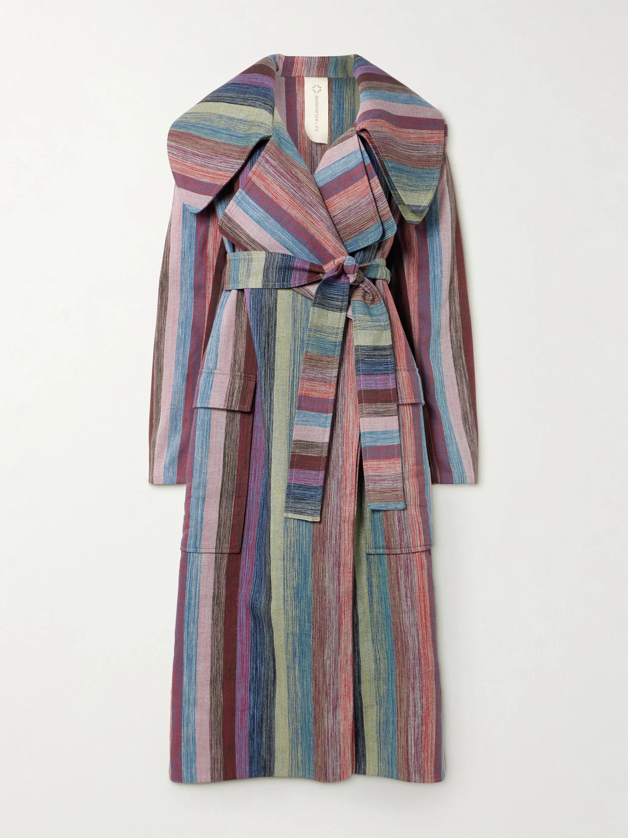 Marakshki Life's vivid collections draw on the vibrancy of its native Morocco. Locally made by the label's team of skilled craftspeople, this trench coat is cut from cotton that's been woven with eye-catching stripes on traditional flatbed looms. Responsible Craftsmanship. This product promotes artisanal skills and a brand that invests in communities and adheres to fair-trade principles. Find out more about our NET SUSTAIN criteria here.