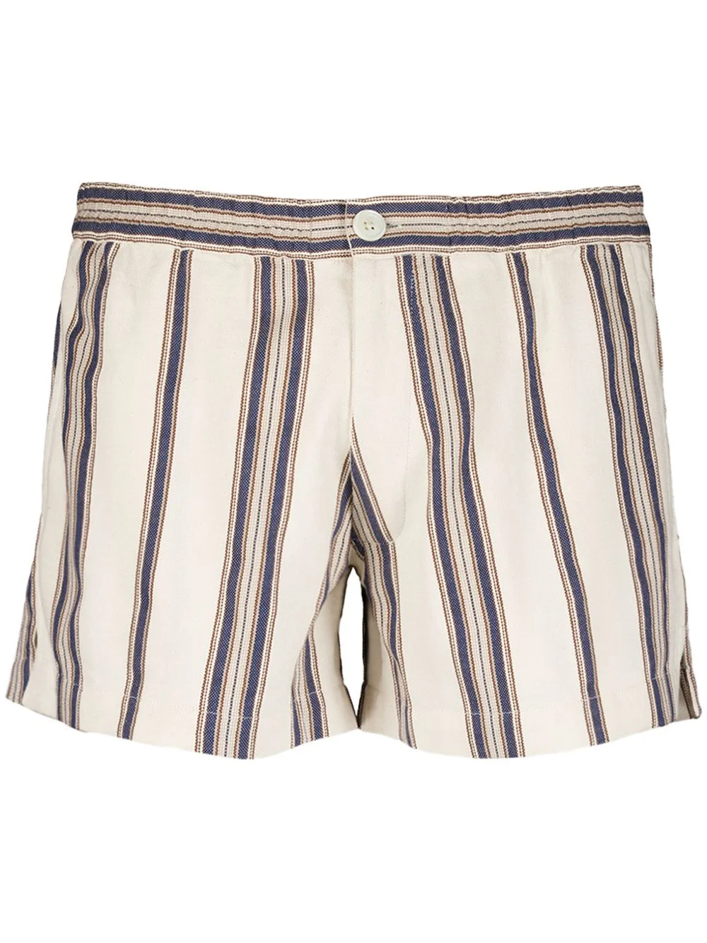 striped elasticated-waist shorts Highlights - White/multicolour - Vertical stripe pattern - Mid-rise - Elasticated waistband - Front button fastening - Thigh-length Imported Composition Fabric 100% Washing instructions Read Manufacturer Guidelines