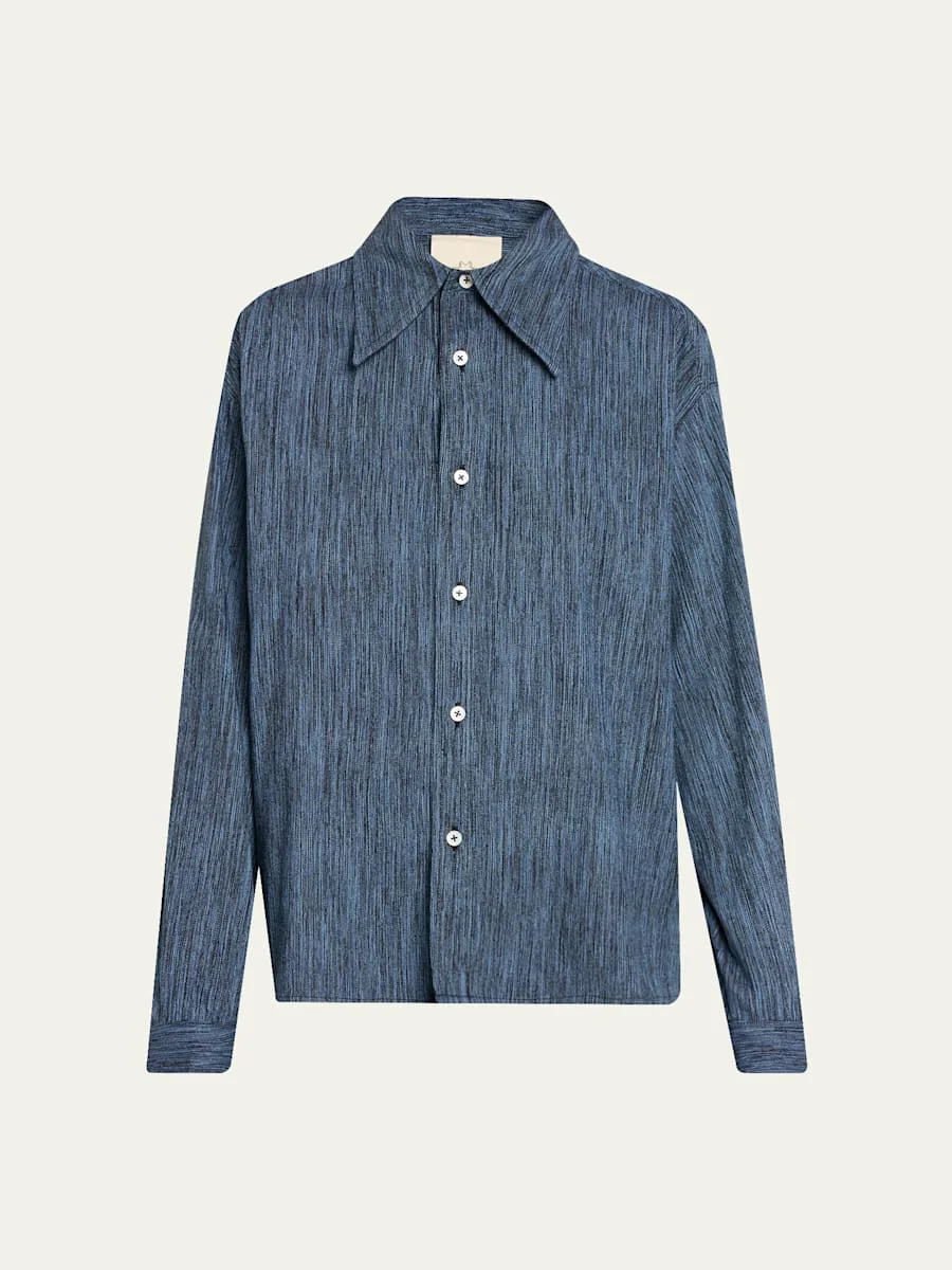 MARRAKSHI LIFE shirt adorned with an oversized collar crafted from handwoven cotton Point collar Dropped shoulders Long sleeves with button cuffs Relaxed fit Hem falls to the hip Buttonfront Cotton Dry clean Made in Morocco