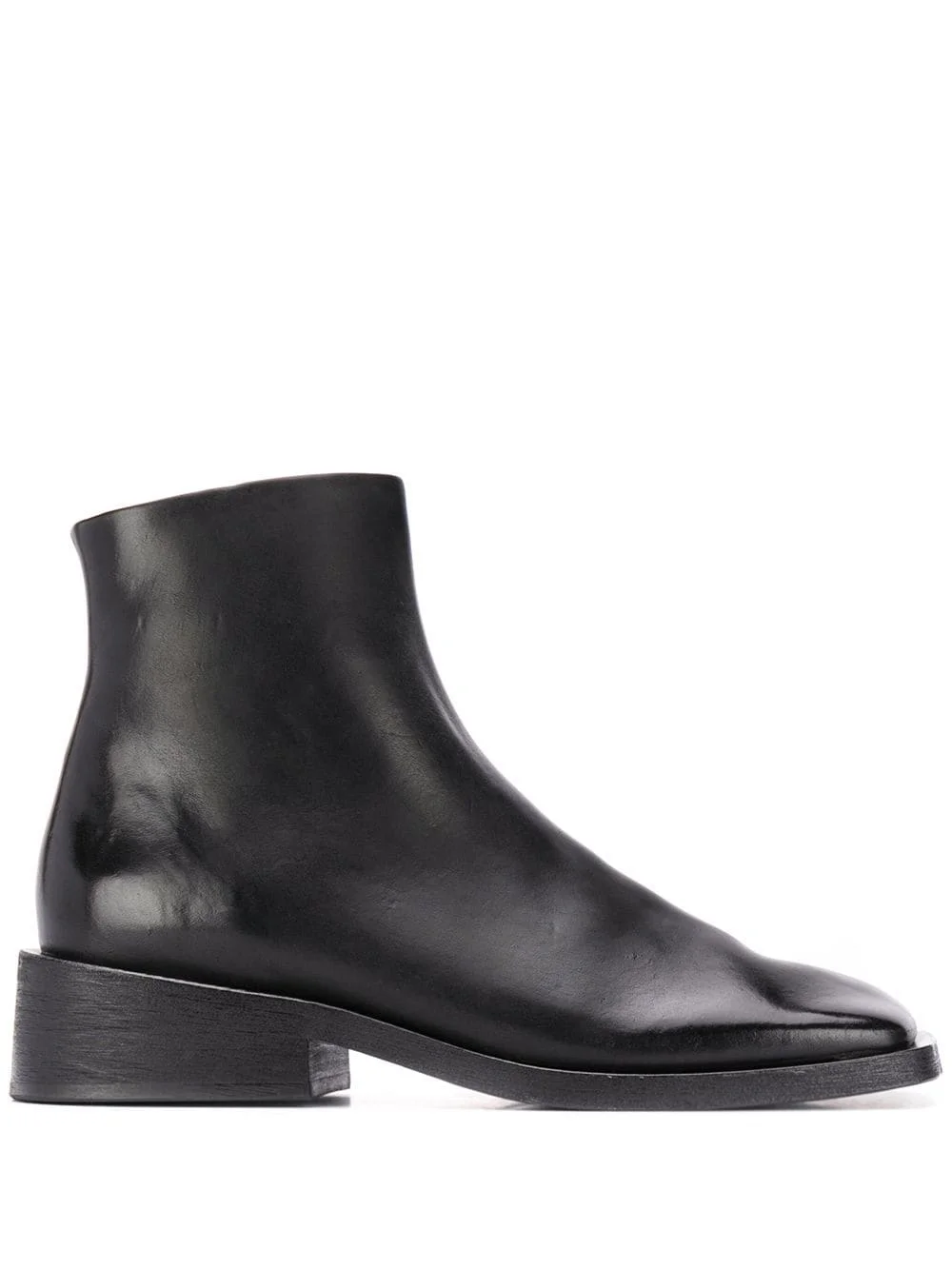 square toe ankle boots Highlights - Black - Leather - Side zip fastening - Low heel Made in Italy Composition Outer: Leather 100% Lining: Leather 100% Sole: Leather 100%, Rubber 100% SIZE & FIT Measurement CIRCUMFERENCE 8.46 in(21.5 cm) HEEL 1.57 in(4 cm) HEIGHT 4.72 in(12 cm) Sole height 0.39 in(1 cm)