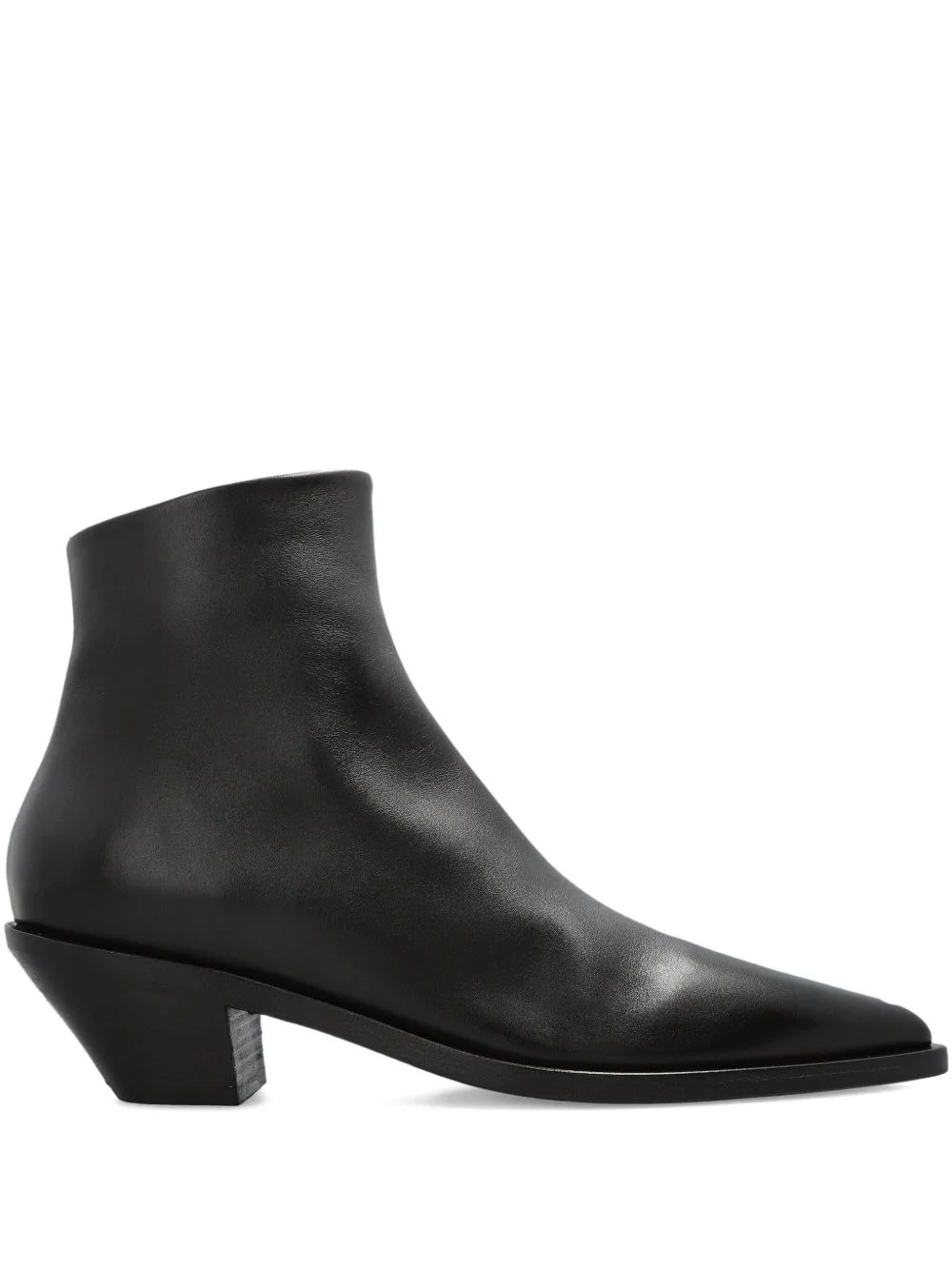 50mm pointed-toe heeled ankle boots Highlights - Black - Leather - Pointed toe - Zip fastening - Mid heel - Cuban heel Made in Italy Composition Outer: Bos Taurus 100% Lining: Calf Leather (top grain) 100% Sole: Calf Leather 100%