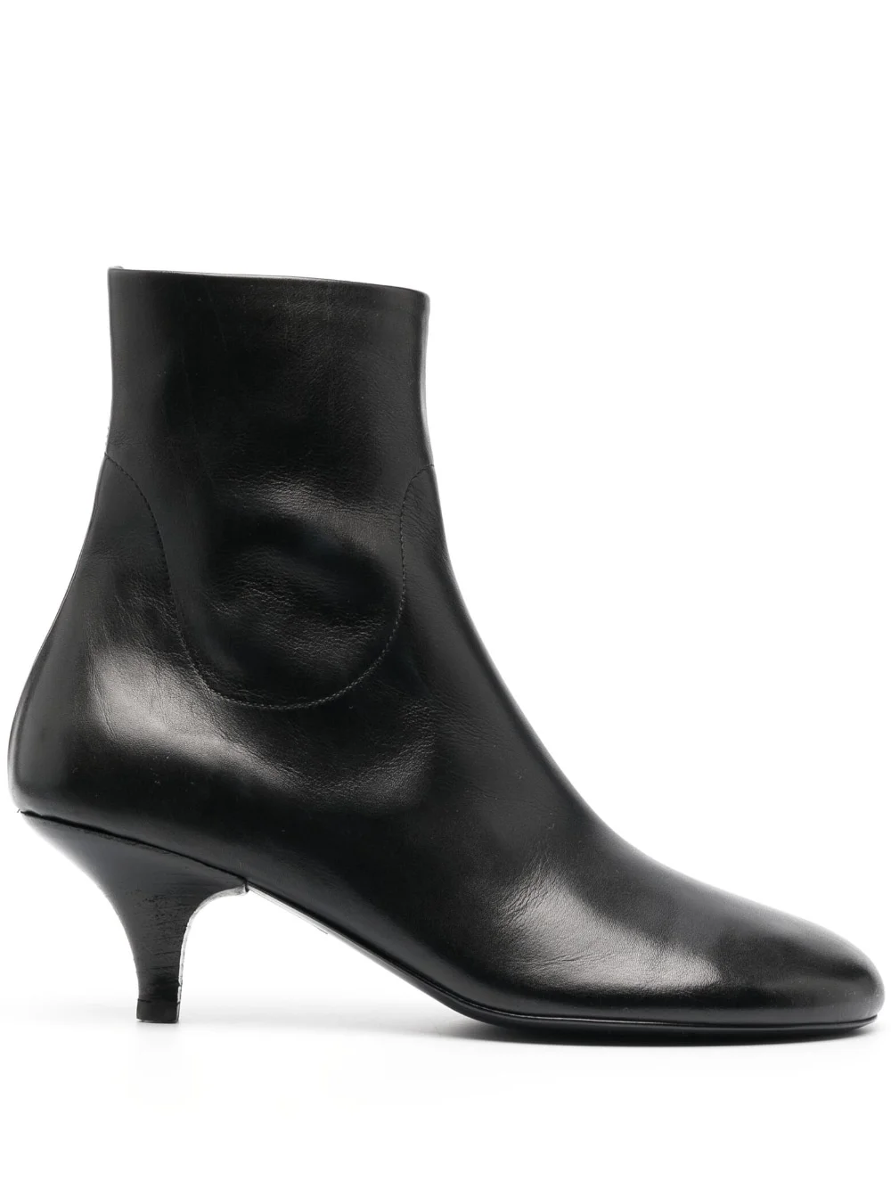 60mm Spilla leather boots jet black calf leather smooth grain ankle-length branded insole tonal hardware round toe concealed side zip fastening mid heel Made in Italy Composition Outer: Calf Leather 100% Lining: Calf Leather 100% Sole: Calf Leather 100% SIZE & FIT Measurement HEEL 2.55 in(6.5 cm) CIRCUMFERENCE 8.66 in(22 cm) Sole height 0.39 in(1 cm)