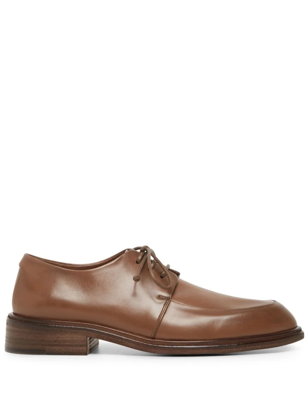 Altopiano almond-toe leather Derby shoes golden brown leather polished finish apron toe almond toe front lace-up fastening stacked heel leather sole Made in Italy Composition Sole: Leather 100% Lining: Leather 100% Outer: Leather 100%