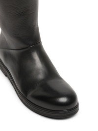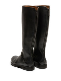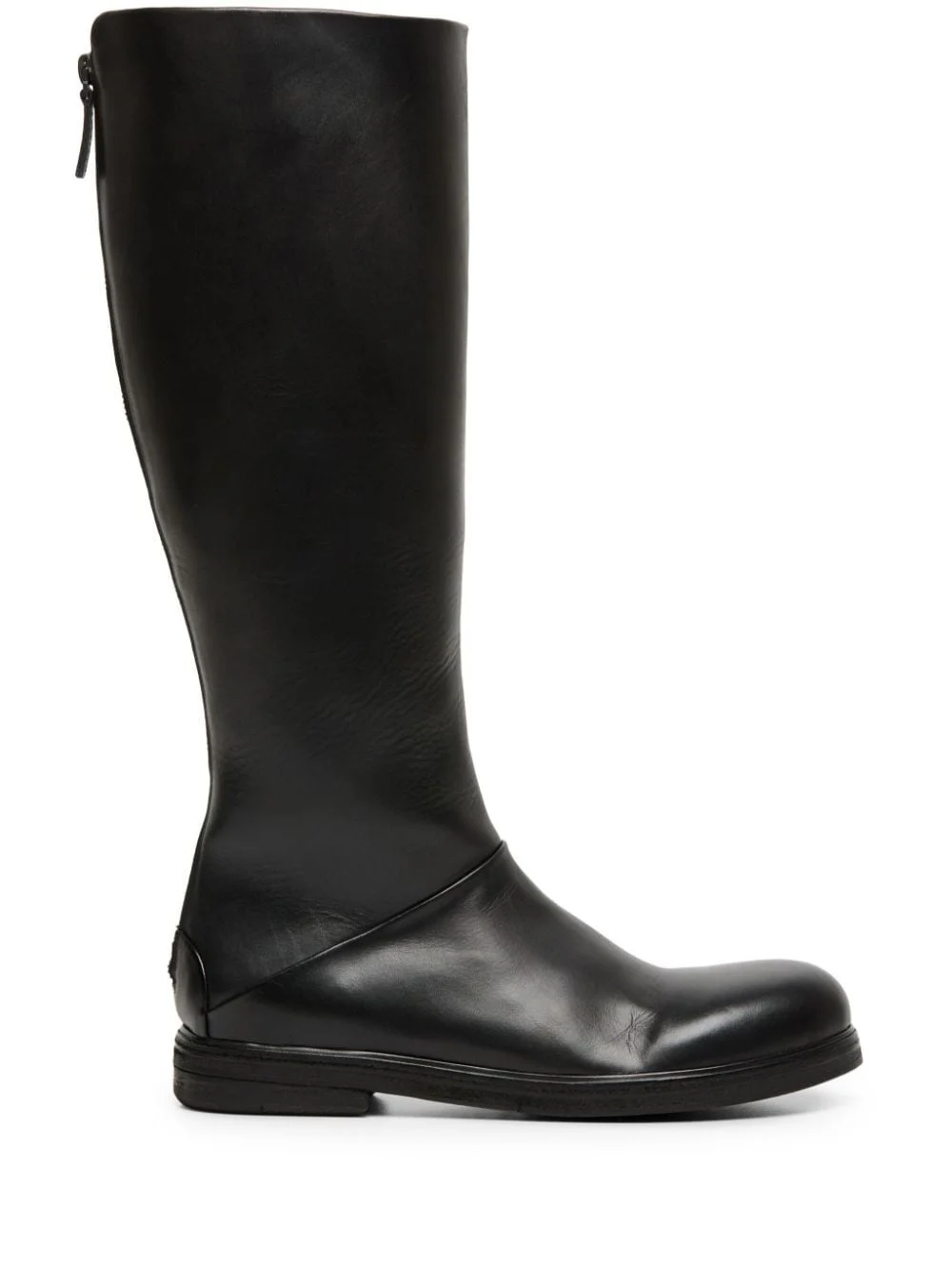 Zucca Zeppa leather knee-high boots black leather smooth grain semi-matte finish upper shoe exposed rear zip fastening round toe flat sole Made in Italy Composition Lining: Calf Leather 100% Outer: Calf Leather 100% Sole: Calf Leather 100%