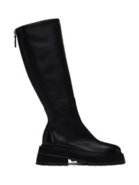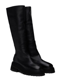 Knee-high grained calfskin boots in black. · Elasticized gusset at inner side · Zip closure at heel · Buffed leather lining · Topstitching at welt · Stacked rubber block heel · Treaded rubber platform sole · Platform: H1.5" · Heel: H2.25" Supplier color: Black Upper: calfskin. Sole: rubber. Made in Italy 242349F115002