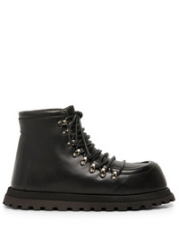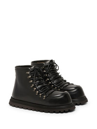 Gicarro chunky-sole leather boots black leather polished finish apron toe round toe front lace-up fastening ankle-length chunky rubber sole Made in Italy Composition Leather 100%