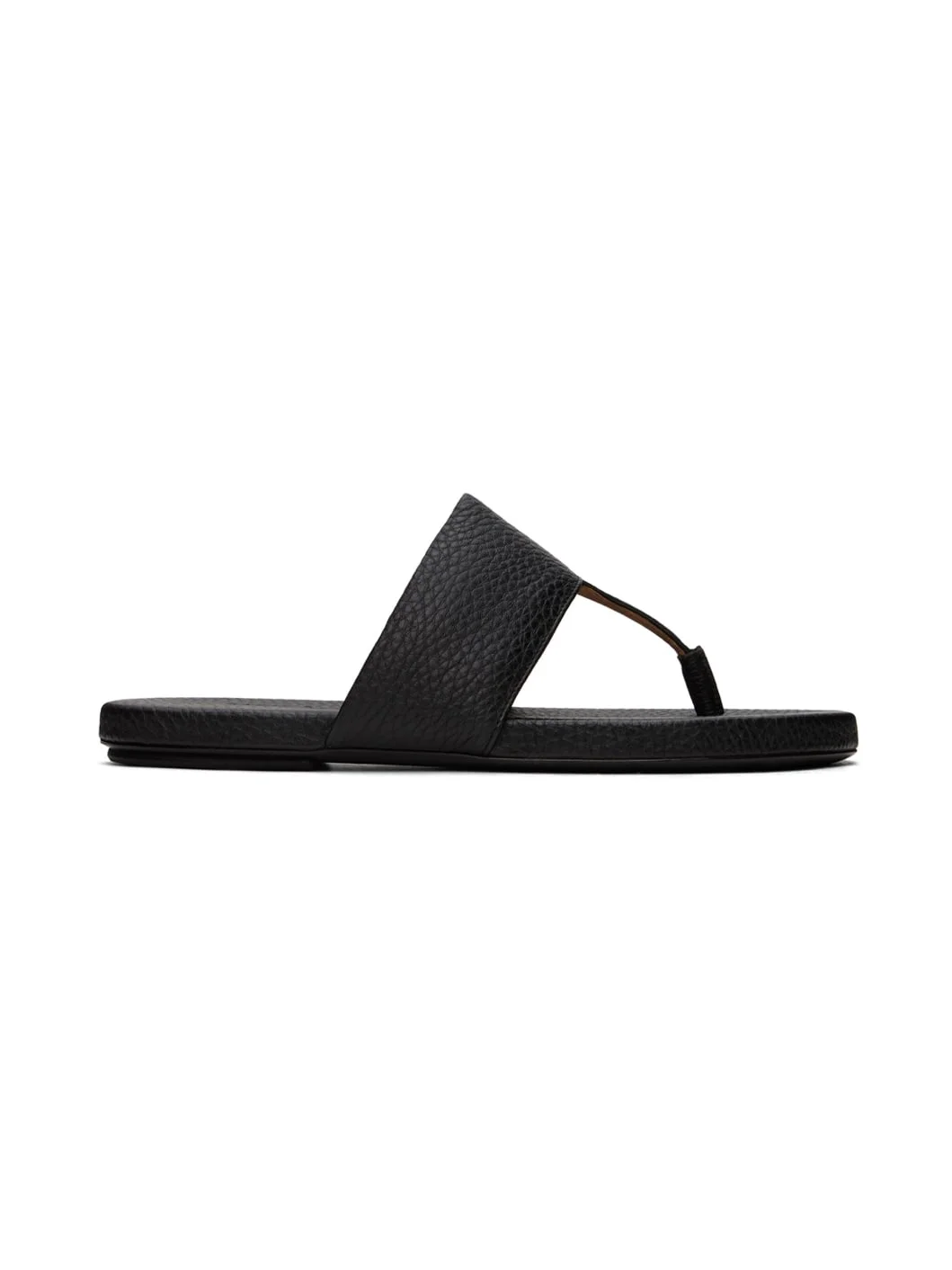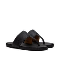 Handcrafted grained leather slip-on sandals in black. · Open toe · Thong-style strap at vamp · Logo embossed at padded footbed · Buffed calfskin lining · Leather sole with rubber injection Supplier color: Black Upper: leather. Sole: leather, rubber. Made in Italy 241349F124014