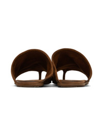 Handcrafted suede sandals in brown. · Thong-style strap at asymmetric vamp · Logo embossed at padded footbed · Rubber injected at leather sole Supplier color: Walnut Upper: leather. Sole: leather, rubber. Made in Italy 241349F124020