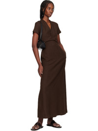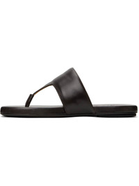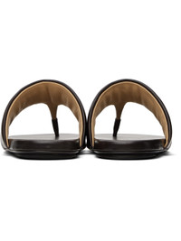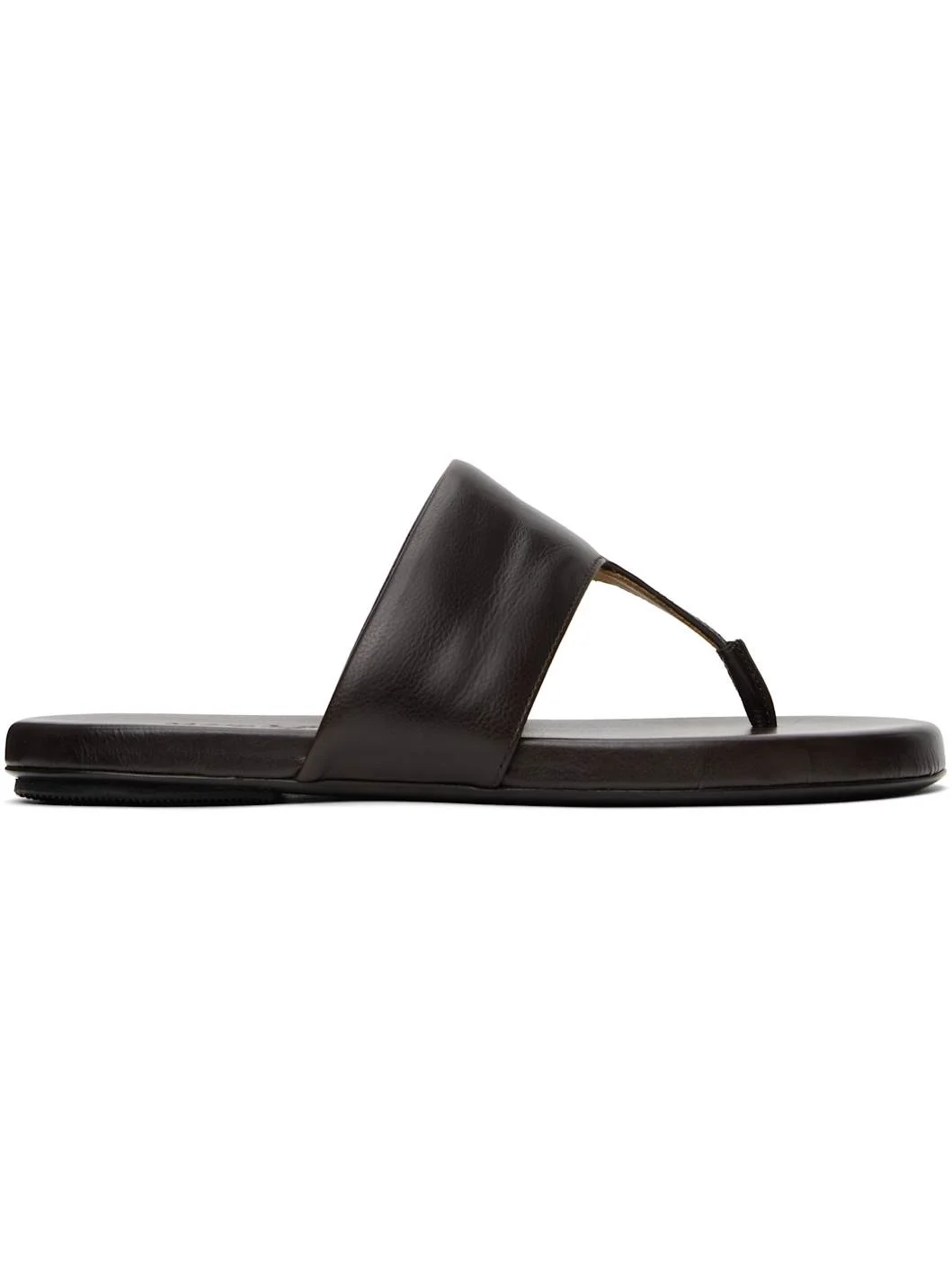 Grained leather flat sandals in brown. · Open toe · Padded thong-style strap at vamp · Logo embossed at padded leather footbed · Hand-painted leather sole with rubber injection Supplier color: Dark brown Upper: leather. Sole: leather, rubber. Made in Italy 251349F124001