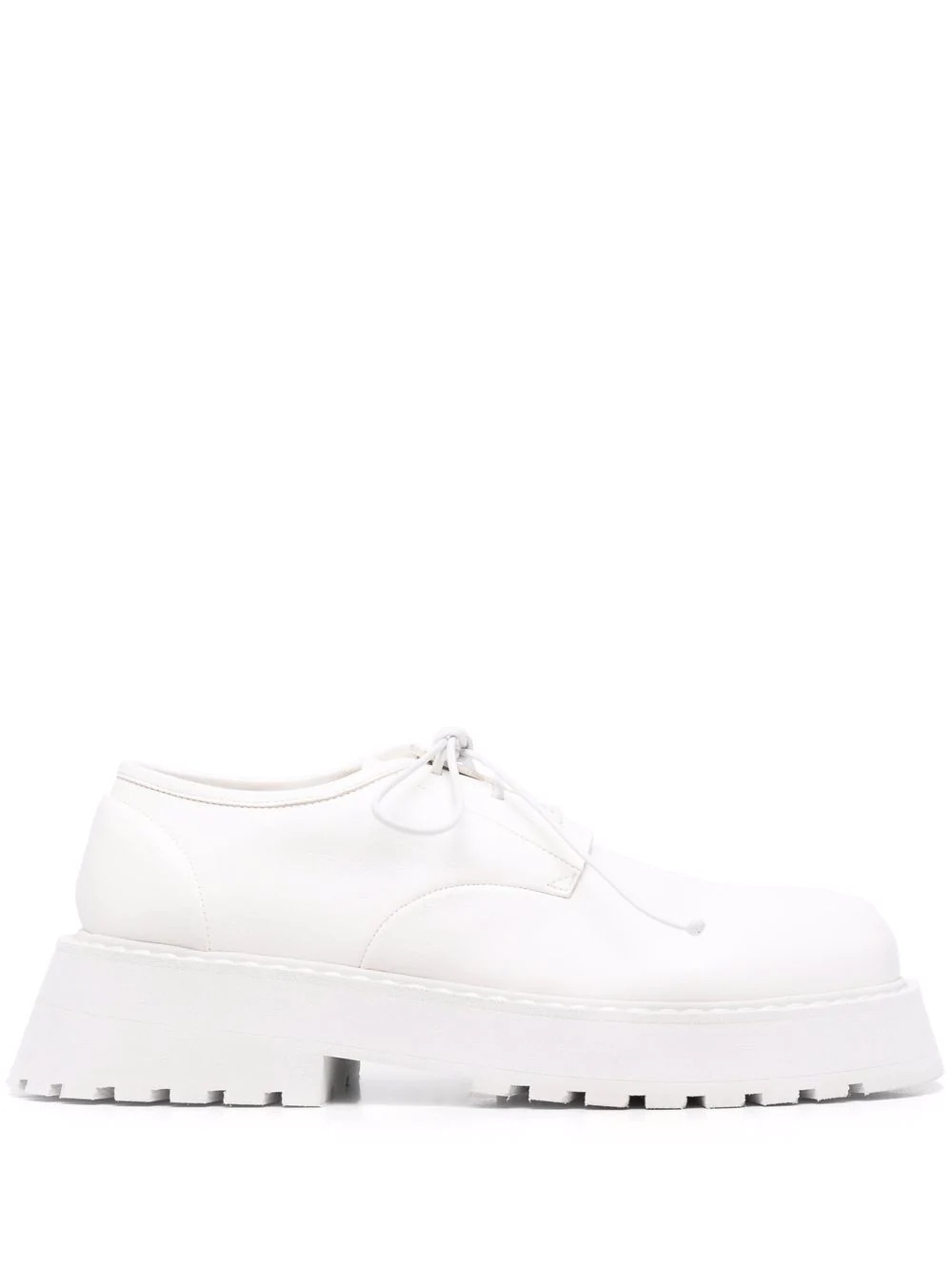 Ivory white leather Carro platform Oxford shoes from MARSÈLL featuring tonal stitching, almond toe, front lace-up fastening, platform sole and ridged rubber sole. Highlights - Ivory white - Leather - Tonal stitching - Almond toe - Front lace-up fastening - Platform sole - Ridged rubber sole Made in Italy Composition lining: Leather 100% outer: Leather 100% sole: Rubber 100% Product measurements for size: 40 (IT) Heel: 6 cm (2.4 in) Platform: 4.5 cm (1.8 in)