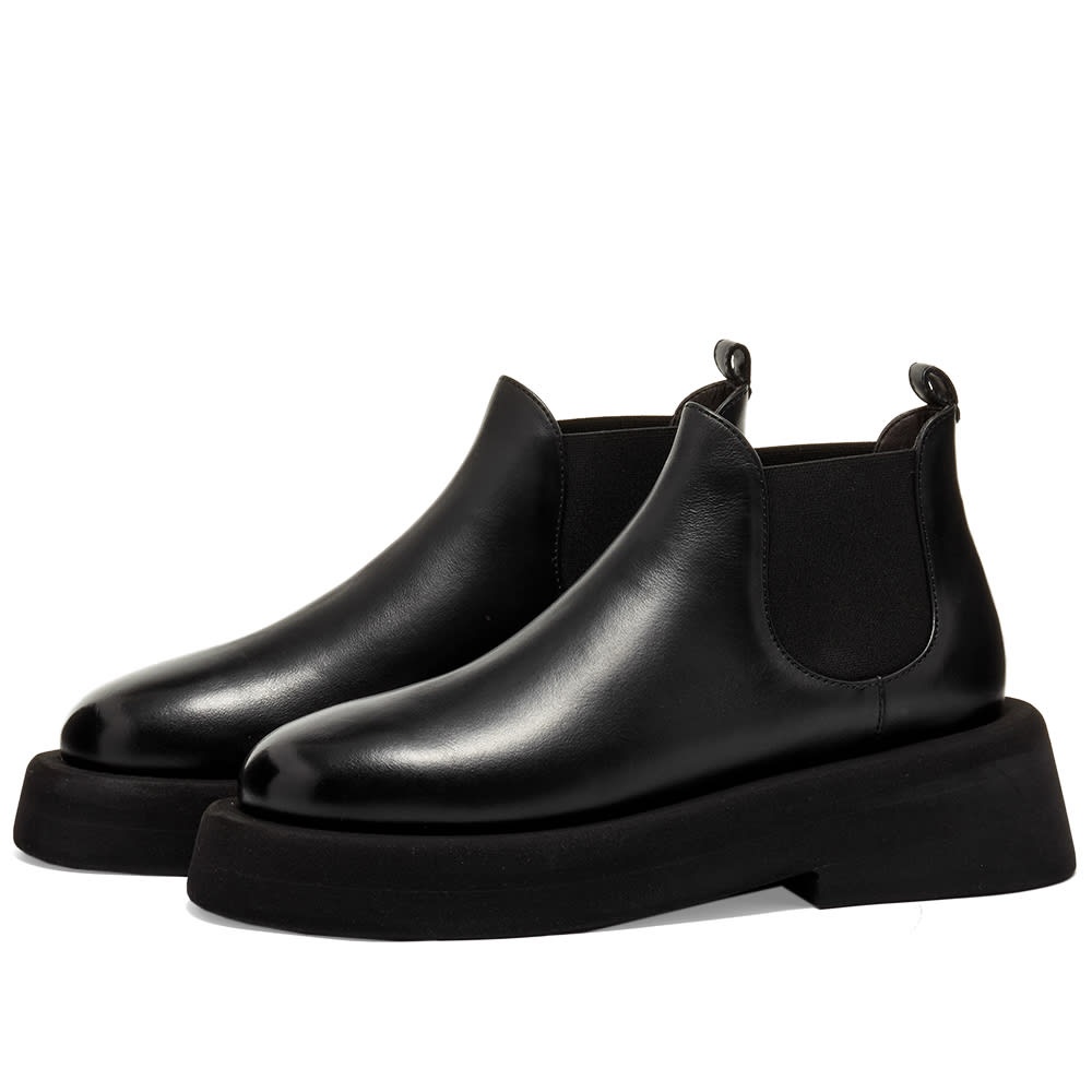 Italian footwear brand Marsèll puts its signature avant-garde spin on a classic chelsea boot with this Gommellone design. Characterised with a chunky rubber sole and rounded silhouette, they’re crafted in Italy from buffed black leather with elasticated side gussets and sit comfortably just above the ankle. - Leather Uppers - Rubber Sole - Elasticated Side Gussets - Made in Italy