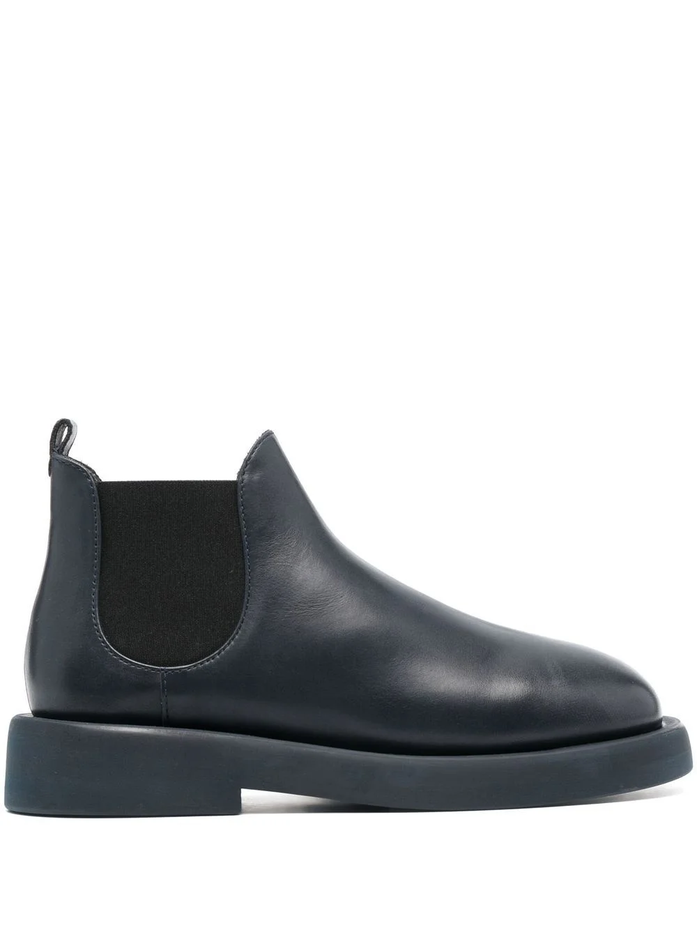 Gommello leather Chelsea boots indigo blue calf leather round toe elasticated side panels low block heel Made in Italy Composition Leather 100% SIZE & FIT Measurement CIRCUMFERENCE 8.46 in(21.5 cm) HEEL 1.37 in(3.5 cm) Sole height 0.78 in(2 cm) HEIGHT 3.93 in(10 cm)