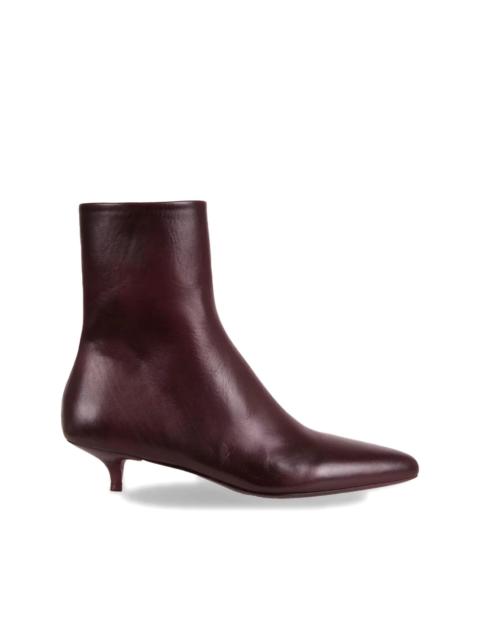 kitten-heel pointed-toe boots Highlights - Dark brown - Leather upper - Pointed toe - Kitten heel - Side zip fastening Made in Italy Composition Outer: Calf Leather 100% Sole: Calf Leather 100%, Rubber 100% Lining: Calf Leather 100%
