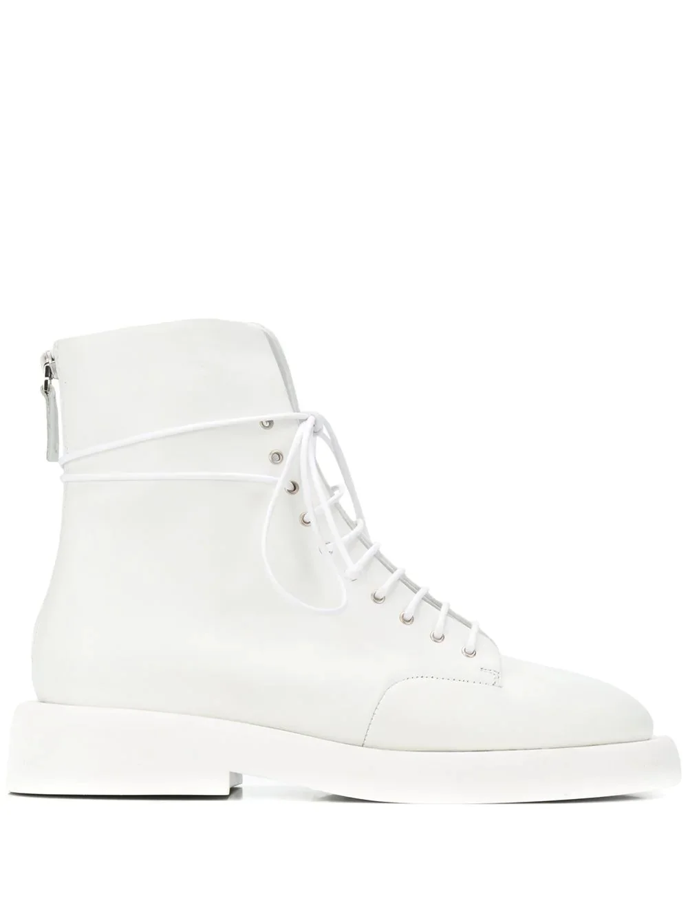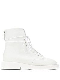 Gommello leather combat boots Marsell combines the classic with the traditional, with its modernist designs that are crafted using the finest italian artisan techniques that have been handed down through the generations. A case in point are these Asti white leather back zip fastening boots. Featuring a round toe, a lace-up front fastening, a high ankle, stitching details and a white rubber sole. Made in Italy Composition Calf Leather 100% SIZE & FIT Measurement HEEL 1.37 in(3.5 cm) Sole height 0.78 in(2 cm) HEIGHT 6.1 in(15.5 cm)