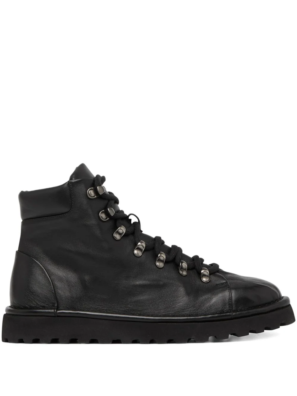 lace-up leather boots Highlights - Black - Leather upper - Lace-up fastening - Metal eyelets - Round toe - Rubber sole Made in Italy Composition Sole: Rubber 100% Lining: Calf Leather 100% Outer: Calf Leather 100%