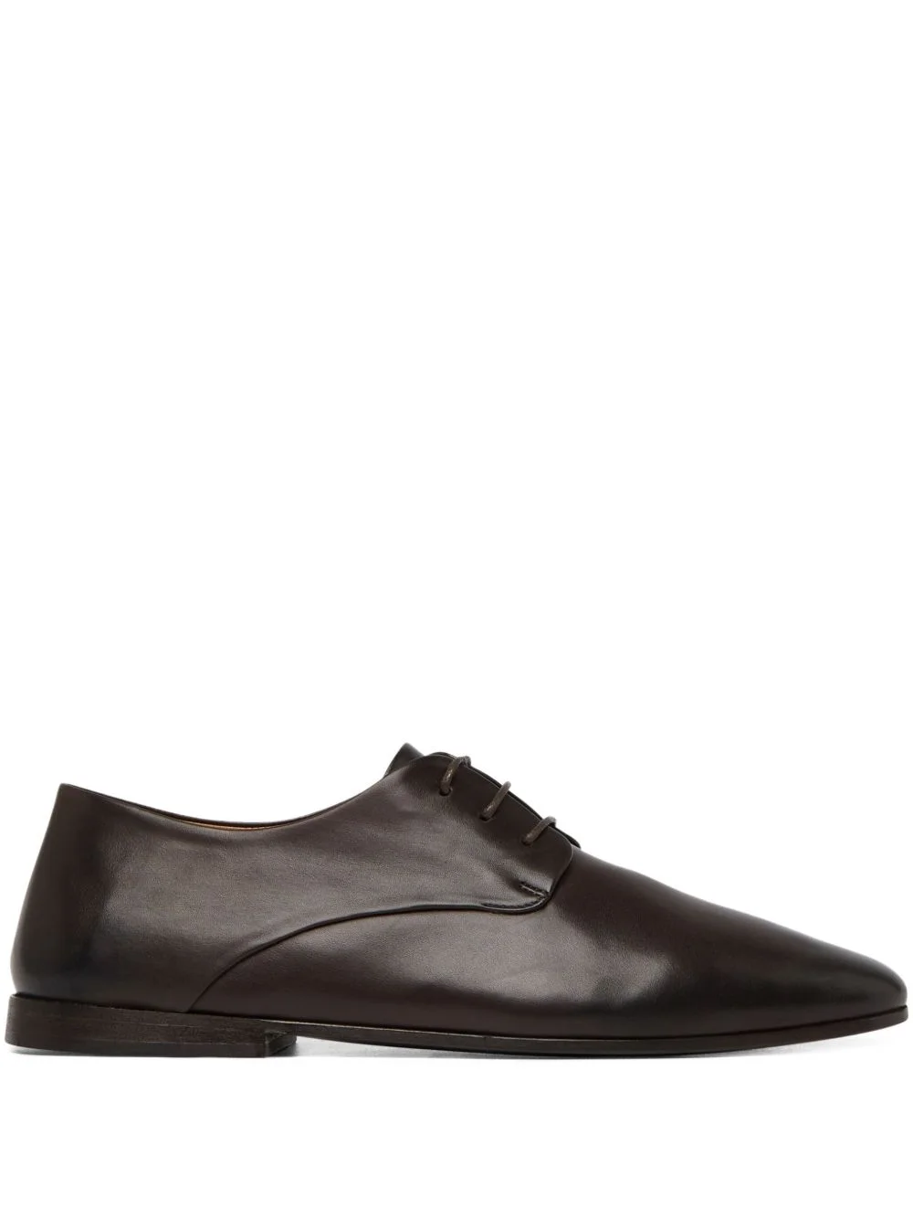 leather derby shoes Highlights - Cedar brown - Front lace-up fastening - Flat rubber sole - Round toe - Branded insole Made in Italy Composition Lining: Calf Leather 100% Sole: Rubber 100%, Calf Leather 100% Outer: Calf Leather 100%