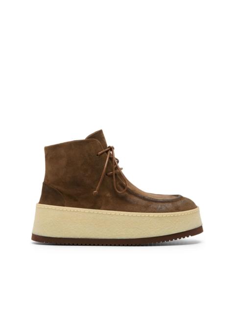 85mm Parapana lace-up suede boots cognac brown calf suede ankle-length front lace-up fastening round toe branded leather insole platform sole Made in Italy Composition Suede 100% SIZE & FIT Measurement HEEL 2.36 in(6 cm) HEIGHT 3.14 in(8 cm) PLATFORM 1.77 in(4.5 cm)