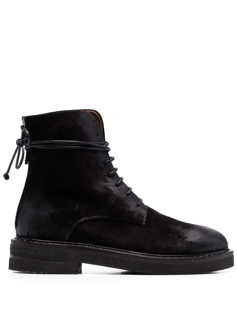 Parrucca suede combat boots black calf leather round toe front lace-up fastening rear zip fastening ankle-length low heel rubber sole Made in Italy Composition Leather 100% SIZE & FIT Measurement HEEL 1.37 in(3.5 cm) HEIGHT 5.51 in(14 cm) Sole height 0.78 in(2 cm)