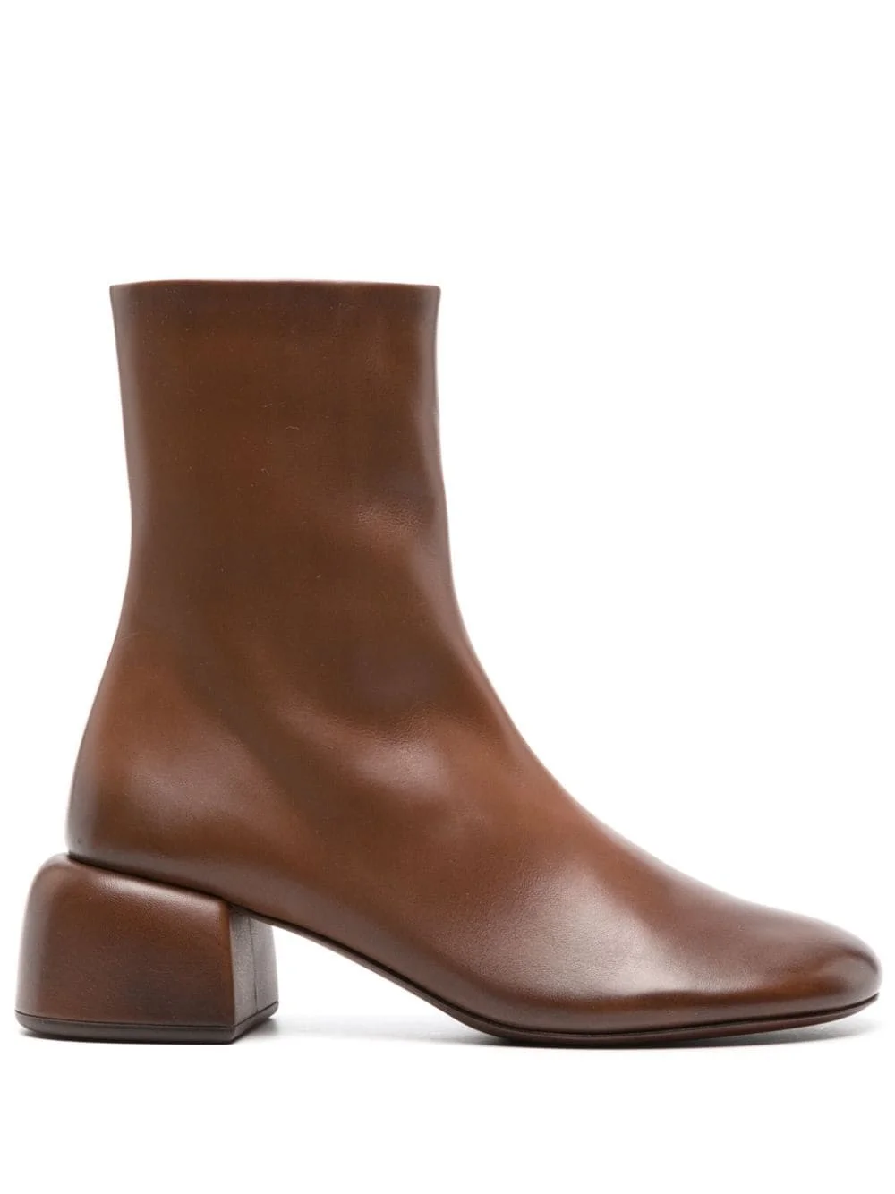 50mm Basata leather ankle boots Highlights - Camel brown - Calf leather - Smooth grain - Branded leather insole - Round toe - Short side zip fastening - Ankle-length - Low block heel - Rubber outsole Made in Italy Composition Lining: Calf Leather 100% Outer: Calf Leather 100% Sole: Calf Leather 100%, Rubber 100% SIZE & FIT Measurement CIRCUMFERENCE 8.66 in(22 cm) HEEL 1.96 in(5 cm) HEIGHT 6.29 in(16 cm)