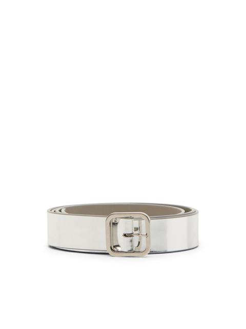 Quadra leather belt black buckle fastening punched holes flat tip engraved logo Made in Italy Composition Calf Leather 100%