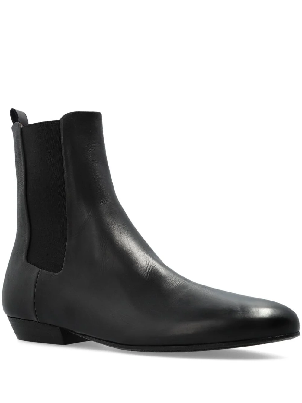 leather Chelsea boots Highlights - Black - Elasticated side panels - Pull tab at the back - Flat heel - Almond toe - Minimal stitching detail Made in Italy Composition Outer: Calf Leather 100% Lining: Calf Leather 100% Sole: Calf Leather 100%