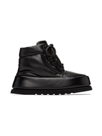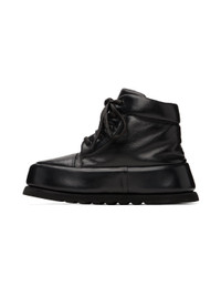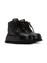 Ankle-high grained leather boots in black. · Lace-up closure · Padded tongue and collar · Buffed calfskin lining · Treaded foam rubber sole Supplier color: Black Upper: leather. Sole: rubber. Made in Italy 232349F113041