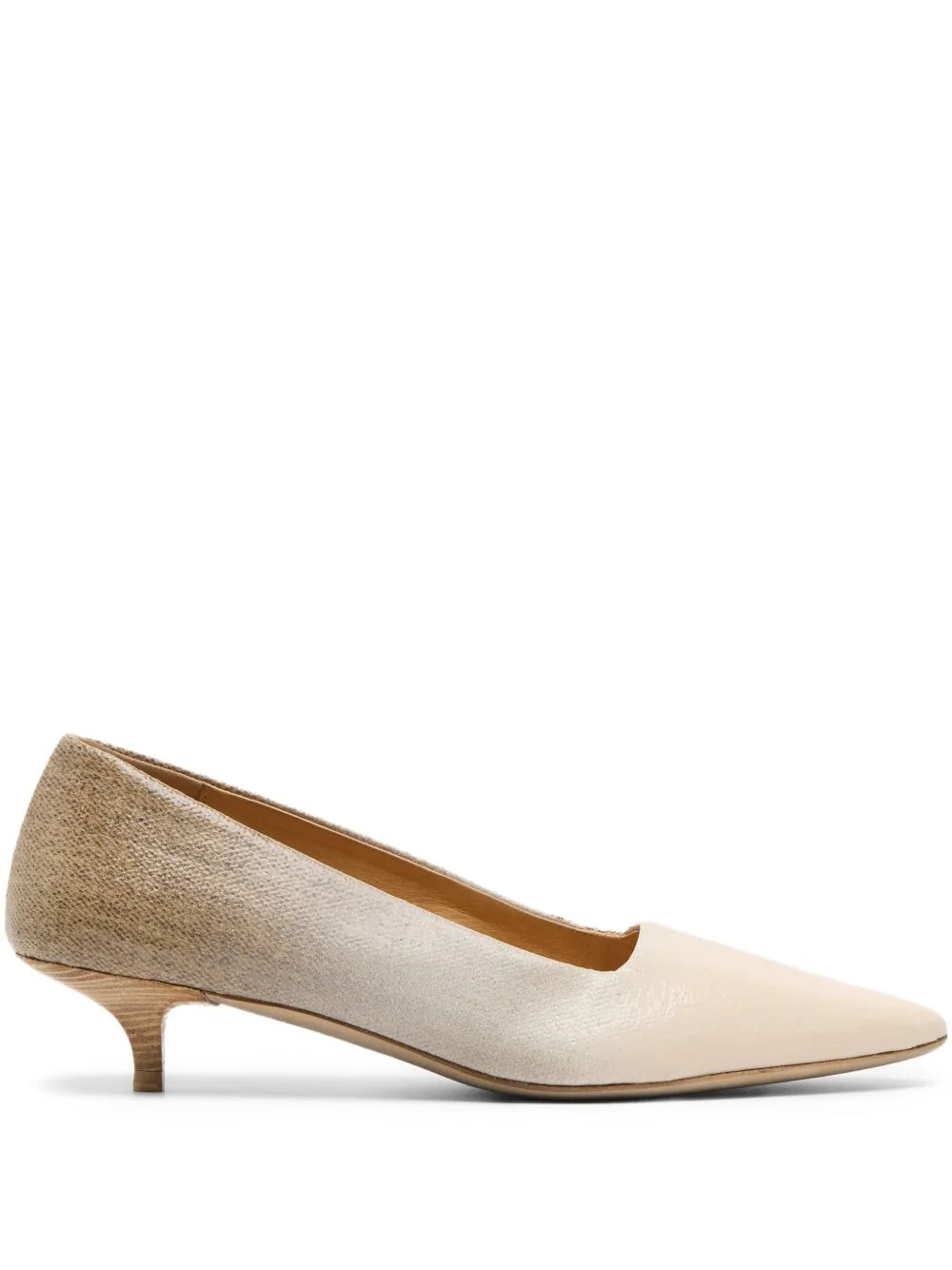 Longiforma leather pumps beige slip-on style kitten heel pointed toe Made in Italy Composition Outer: Calf Leather 100% Sole: Calf Leather 100% Lining: Calf Leather 100%