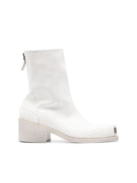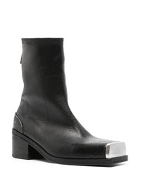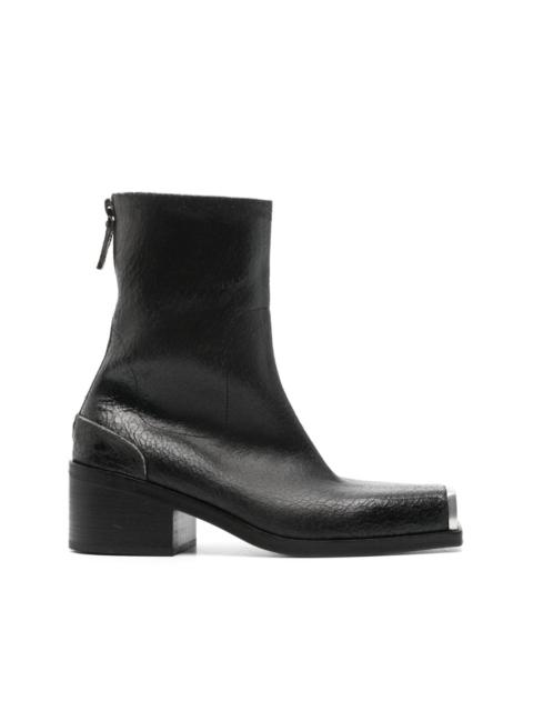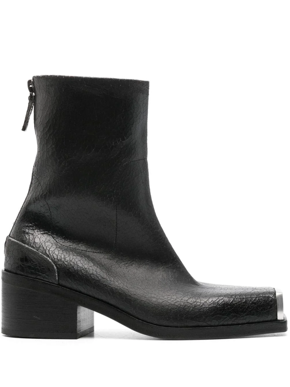 metal-toecap crinkled boots Highlights - Black - Calf leather - Crinkled finish - Silver-tone metal toecap - Square toe - Rear zip fastening - Leather lining - Low block heel Made in Italy Composition Lining: Calf Leather 100% Sole: Calf Leather 100%, Rubber 100% Outer: Calf Leather 100% SIZE & FIT Measurement CIRCUMFERENCE 10.62 in(27 cm) HEEL 2.16 in(5.5 cm) HEIGHT 7.48 in(19 cm) Sole height 0.39 in(1 cm)