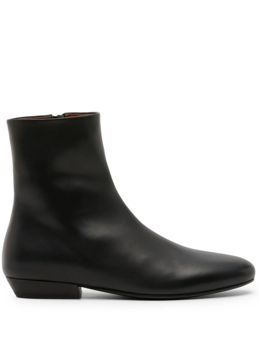 Miniblocco boots black calf leather smooth grain side zip fastening block heel round toe ankle-length branded leather insole leather sole Made in Italy Composition Sole: Calf Leather 100%, Rubber 100% Lining: Calf Leather 100% Outer: Calf Leather 100%