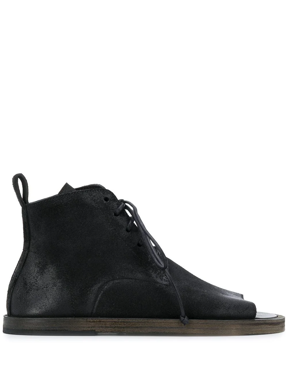 Sandello open-toe boots Open toe flat desert boots from Marsell featuring an open top design, a lace-up front fastening, a pull tab at the rear and a flat rubber sole. Made in Italy Composition Calf Leather 100% SIZE & FIT Measurement HEEL 0.59 in(1.5 cm) HEIGHT 3.93 in(10 cm) Sole height 0.39 in(1 cm)
