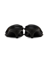 Handcrafted grained calfskin slip-on heeled sandals in black. · Padded strap at vamp · Logo embossed at padded footbed · Piping at buffed leather midsole · Stacked leather kitten heel with rubber injection · Hand-dyed leather sole with rubber injection · Heel: H1.25" Supplier color: Black Upper: calfskin. Sole: leather, rubber. Made in Italy 241349F125007