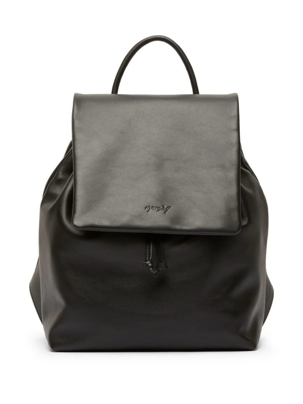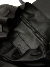 Pattina leather backpack Highlights - Black - Leather - Debossed logo to the front - Single top handle - Two adjustable shoulder straps - Foldover top with magnetic fastening - Main compartment - Internal drawstring fastening waist - Internal drawstring Made in Italy Composition Outer: Leather 100%