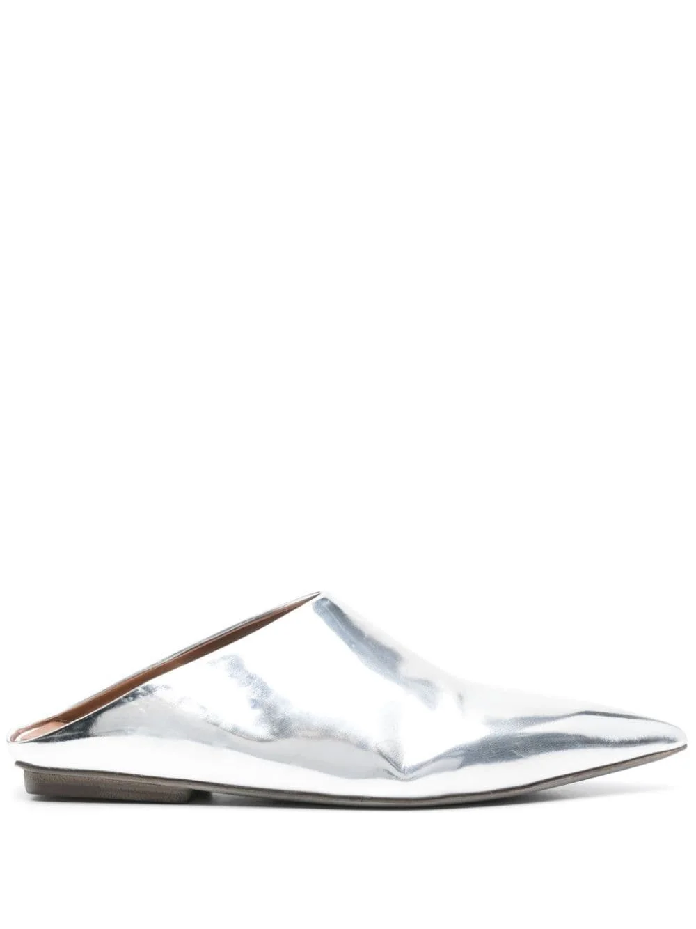 pointed-toe flat leather mules Highlights - Silver-tone - Calf leather - Patent finish - Pointed toe - Branded leather insole - Flat leather sole - Slip-on style Made in Italy Composition Outer: Patent Calf Leather 100% Sole: Calf Leather 100% Lining: Calf Leather 100% SIZE & FIT Measurement HEEL 0.78 in(2 cm) Sole height 0.39 in(1 cm)