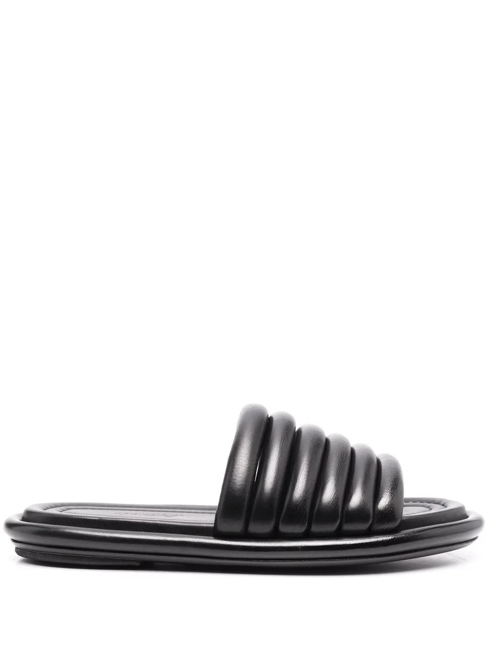 Spalmata tubular sandals Marsell injects a textural influence to this pair of slides. They arrive in black leather with a chunky-ribbed design. Made in Italy Composition Outer: Leather 100% Lining: Leather 100% Sole: Leather 100%, Rubber 100% SIZE & FIT Measurement HEEL 0.98 in(2.5 cm) Sole height 0.78 in(2 cm)