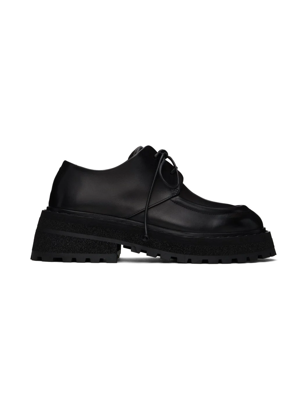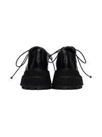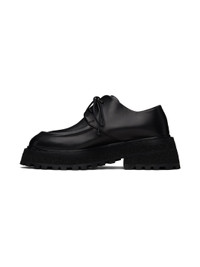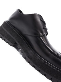 Buffed leather derbys in black. · Moc toe · Lace-up closure · Grained leather lining · Padded leather footbed · Stacked foam rubber and leather platform midsole and heel · Lugged rubber sole · Platform: H1.25" · Heel: H2.25" Supplier color: Black Upper: leather. Sole: rubber, leather. Made in Italy 242349F120012