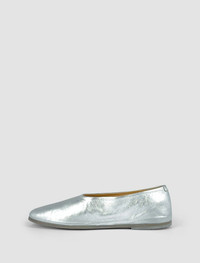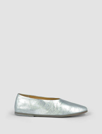 Coltellaccio ballerina from Marsell comes in silver colour with a Blake-stitched upper made of recycled leather. It is hand-coloured with recycled rubber heels. Product Reference Code: MW2105 541