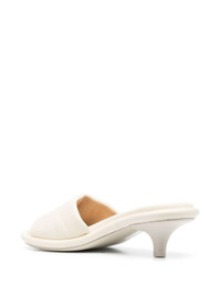 calf-leather kitten-heel mules from MARSÈLL featuring off-white, calf leather, round toe, open back, single toe strap, branded footbed, kitten heel and slip-on style. Size & Fit HEEL: 8cm Sole height: 2cm Fabric and Care Designer Style ID: MW8010 Designer Colour: 118 LATTE Composition: Sole: Calf leather 100%; Outer: Calf leather 100%; Lining: Calf leather 100%Made in Italy
