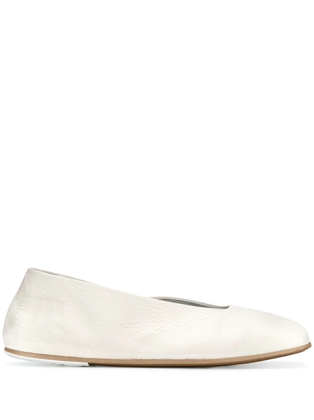 square toe ballerinas White leather square toe ballerinas from Marsell featuring a slip-on style, leather panels, a branded insole and a flat rubber sole. Made in Italy. Made in Italy Composition Outer: Leather 100% Lining: Leather 100% Sole: Leather 100%, Rubber 100% SIZE & FIT Measurement HEEL 0.39 in(1 cm)