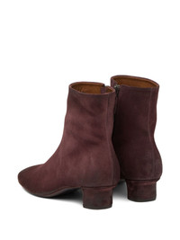 suede heeled boots Highlights - Dark-red - Suede upper - Low block heel - Zip fastening - Round toe - Ankle height Made in Italy Composition Lining: Calf Leather 100% Sole: Calf Leather 100% Outer: Calf Suede 100%